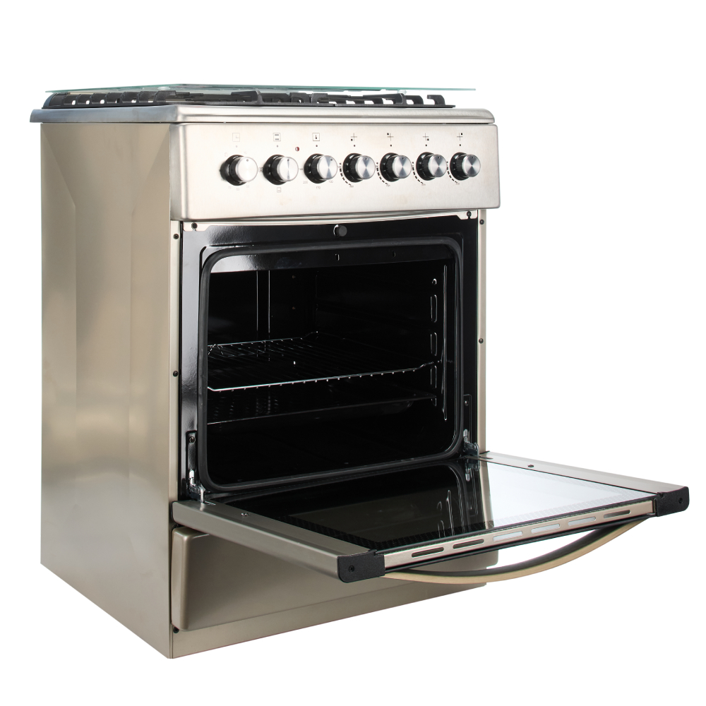 4. Газовая плита De Luxe 606040.00 гэ-005 (кр) ЧР (нержавейка, стекл.крышка, эл.духовка)