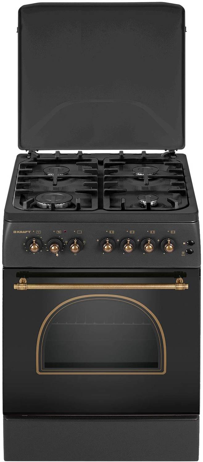 4. Газовая плита De Luxe 5040.41 гэ (кр) ЧР-013 (топленое молоко, эл.духовка, таймер, гриль, вертел)