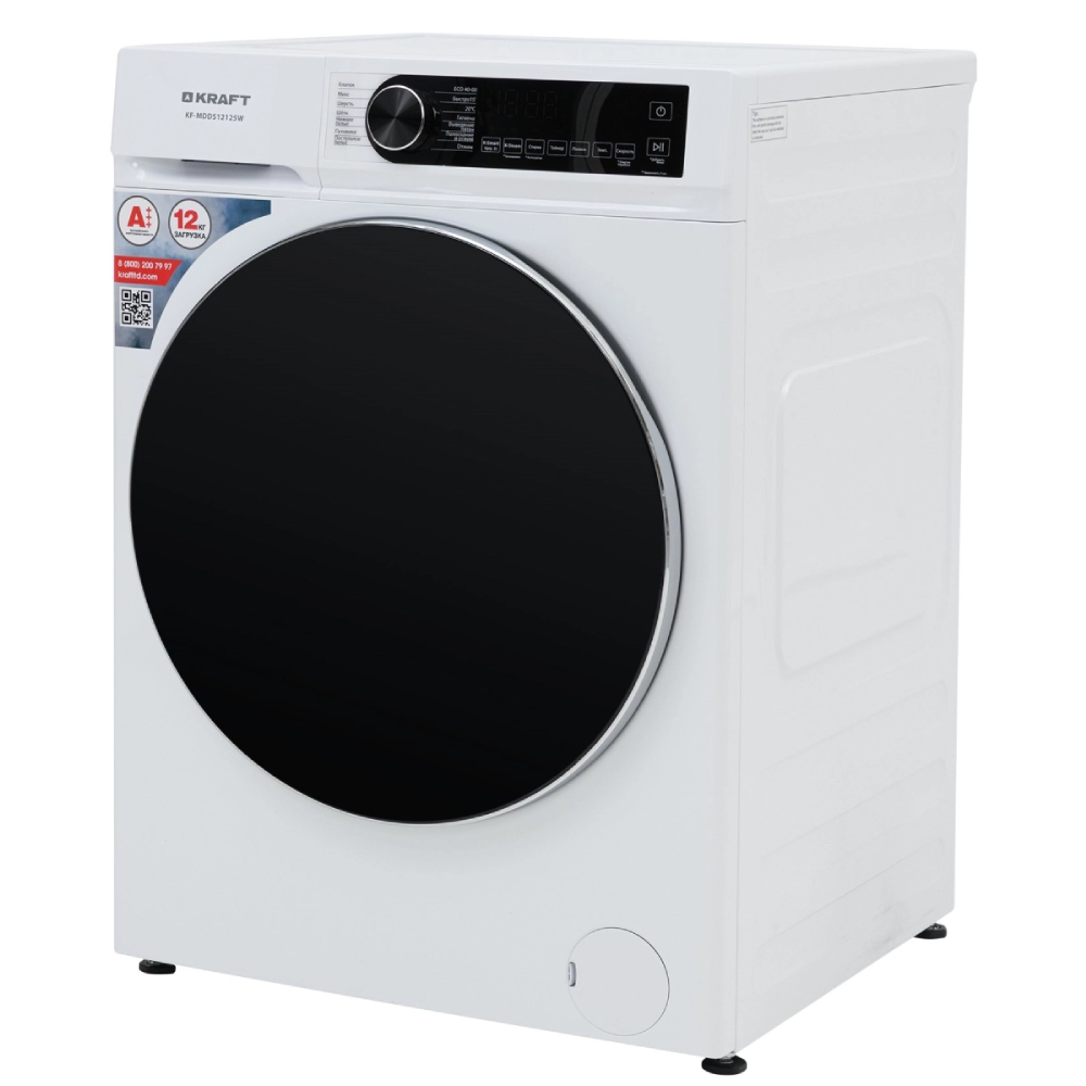 5. Стиральная машина Kraft KF-MDDS 12125 W (1200об, 12кг, A+++, дисплей, пар, инвертор, прямой привод)
